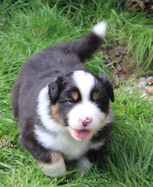 Femelle Noir Tricolore, queue écourtée (partielle à la naissance). Nyota est très caline,curieuse et proche de l'homme. C'est un petit clown. Photos à 8/9 semaines. Facilités de paiement. Parents testés et indemne (dysplasie, maladies oculaires, MDR1) Contact pour plus d'infos. Son album photo: https://www.facebook.com/pg/phoenixdanargoat/photos/?tab=album&album_id=1048410985260346