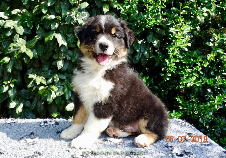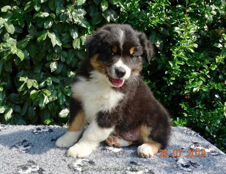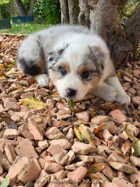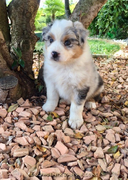 "Création divine" Femelle bleu merle, queue courte (née incomplète). Photos à 6 semaines. Facilités de paiement. Parents testés et indemne (dysplasie, maladies oculaires) Contact pour plus d'infos.