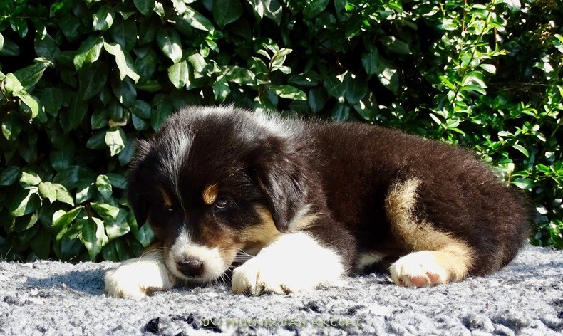 "Dieu des Mers" Mâle noir tricolore, queue courte. Photos à 8 semaines. Poseidon est un chiot osseux et costaud, joueur, câlin, aime se laisser vivre. Ile ne présente pas d'excès dans son caractère, ni trop vif ni réservé. Facilités de paiement. Parents testés et indemne (dysplasie, maladies oculaires) Contact pour plus d'infos.