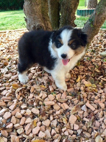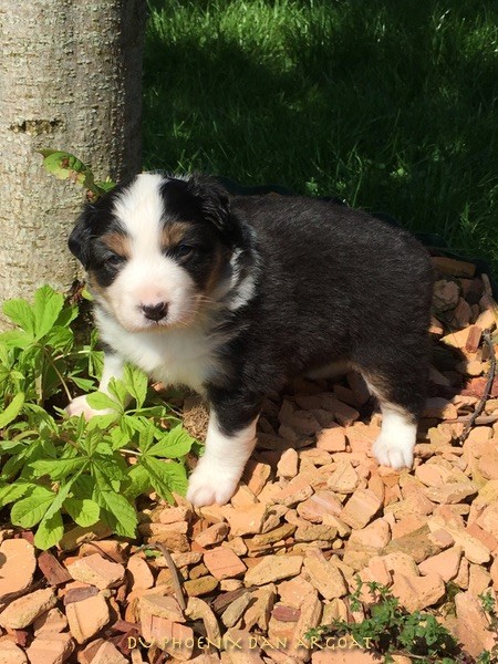 "Cheval ailé" Mâle rouge tricolore, queue courte. Photos à 6 semaines. Pégase est un chiot modéré en ossature, câlin, observateur qui aime sa tranquillité. Encore 1 semaine d'observation sur son caractère. Facilités de paiement. Parents testés et indemne (dysplasie, maladies oculaires) Contact pour plus d'infos.
