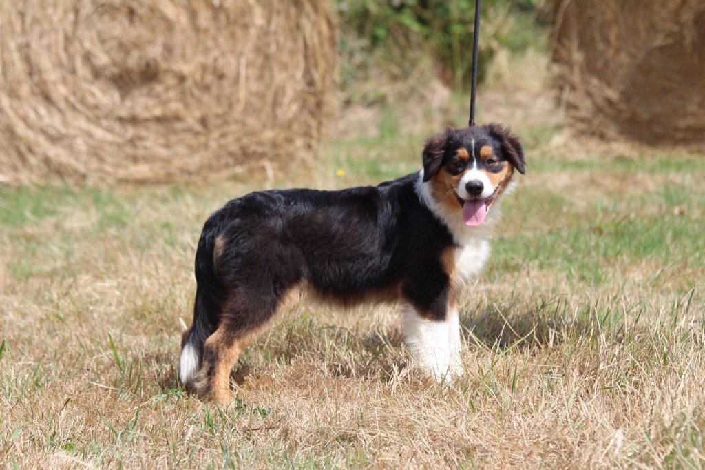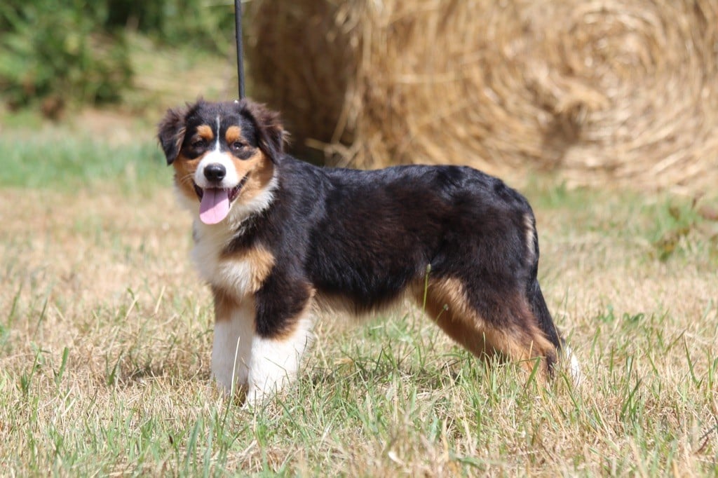 Mâle bleu merle tricolore, queue longue. Shain aime l'humain comme toute sa fratrie. Il se fait remarquer par son côté pacifique, modéré avec une pointe de douceur. Il adore les longs câlins et massages. Il aime l'eau et se mouiller ! Son prix est baissé pour autant son éducation s'enrichit chaque jour: Un chiot de 5 mois ici, est propre au moins la journée, connait le rappel, le "non", le respect de l'humain, se laisse manipuler, la hiérarchie et les codes canins et plus... Il est apte à faire de belles balades. Parents testés et indemnes (dysplasie, maladies oculaires, tests génétiques). Familles choisies et guidées, chiots suivis. Facilités de paiements. Priorité au caractère.